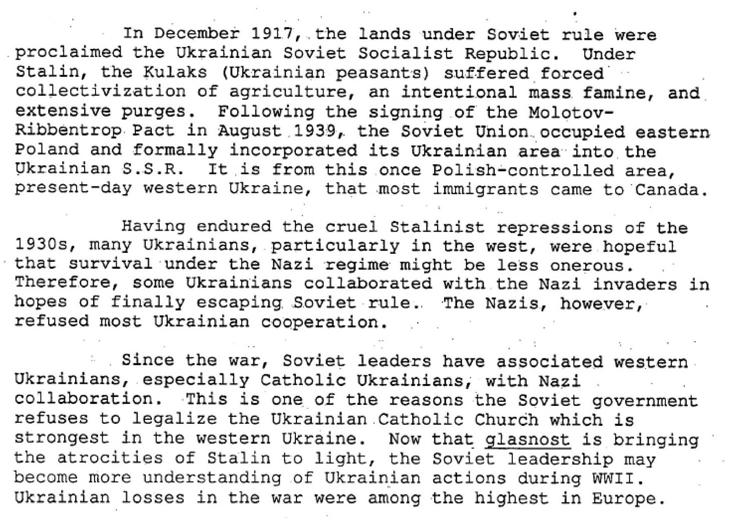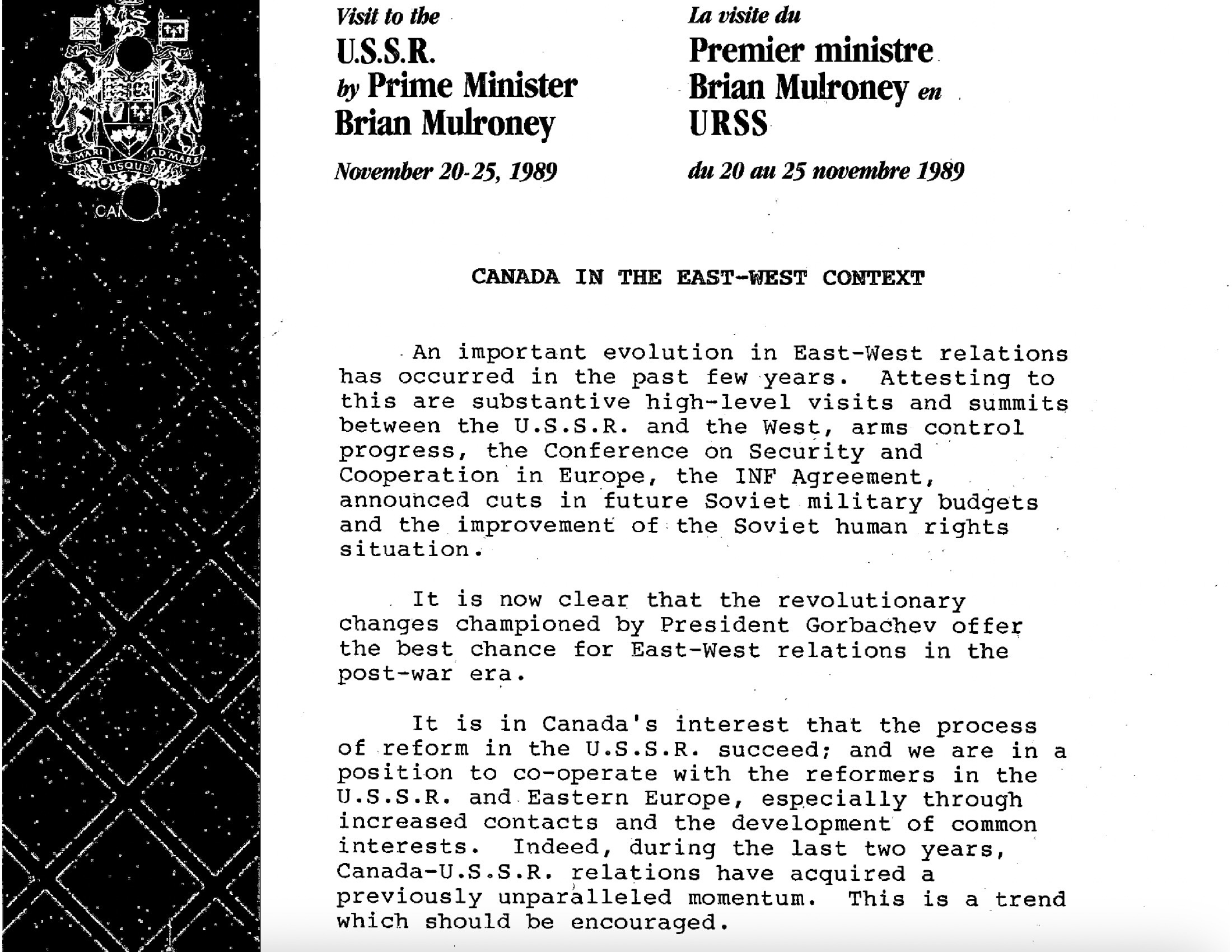 These records emphasize that it was in Canada’s best interests for Soviet reforms to succeed. In November 1989, Canadians hoped for the transformation, rather than the collapse, of the Soviet Union.