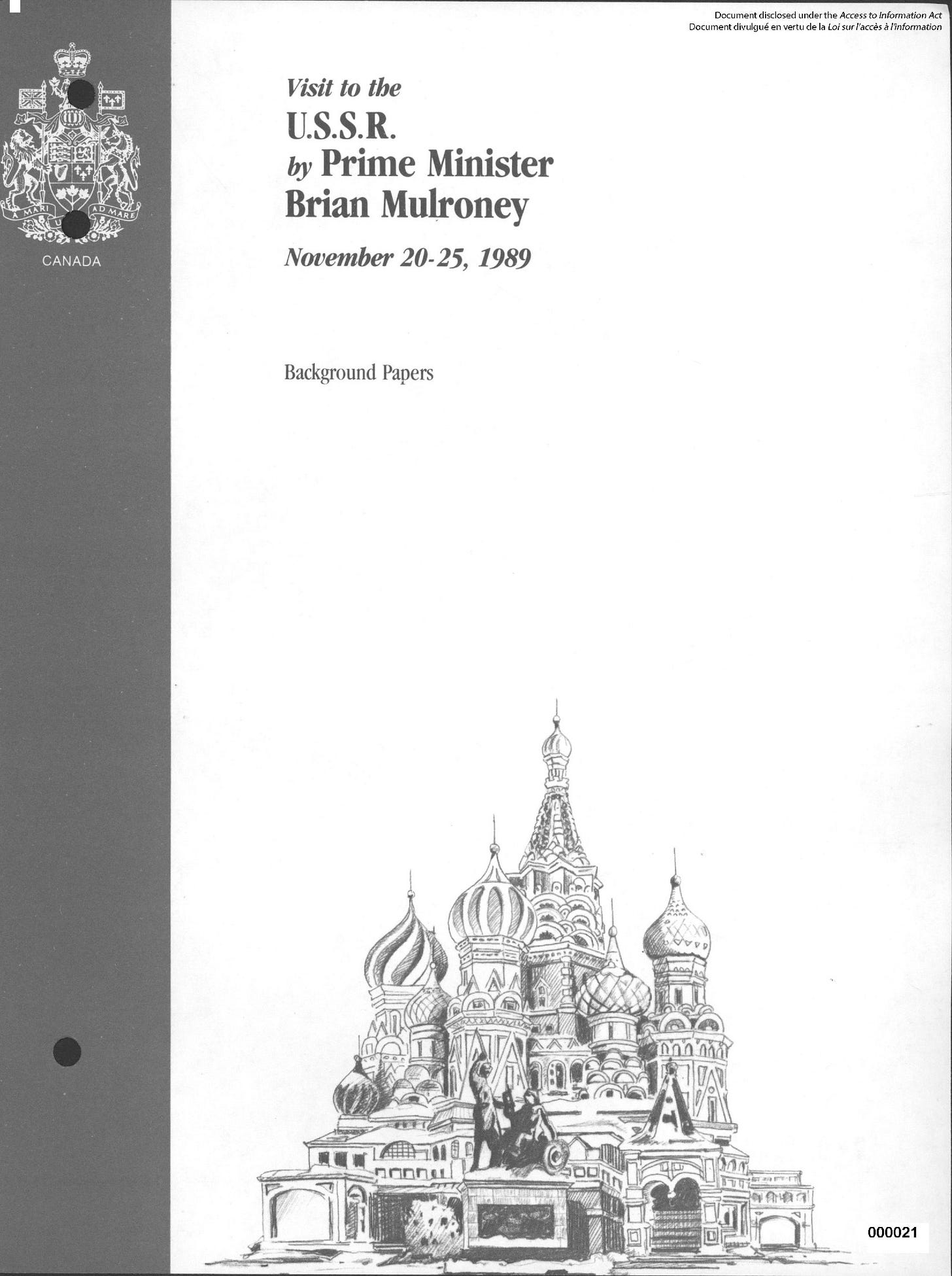 This briefing book is comprised of 54 documents that shed light on how the Canadians of 1989 perceived the meaning and significance of seismic shocks to the Soviet Union and international system. The full suite of records released under the Access to Information Act can be downloaded as CDMV00056 and CDMV00057.